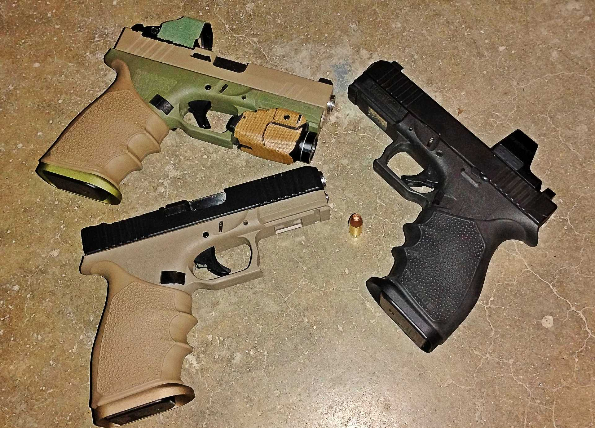 After putting together a few guns with the PSA Dagger Full Size S as the base I thought it might be interesting to share. So I have a couple 40's and a 9mm in the photo. Can you guess which are the 40's and which is the 9mm?